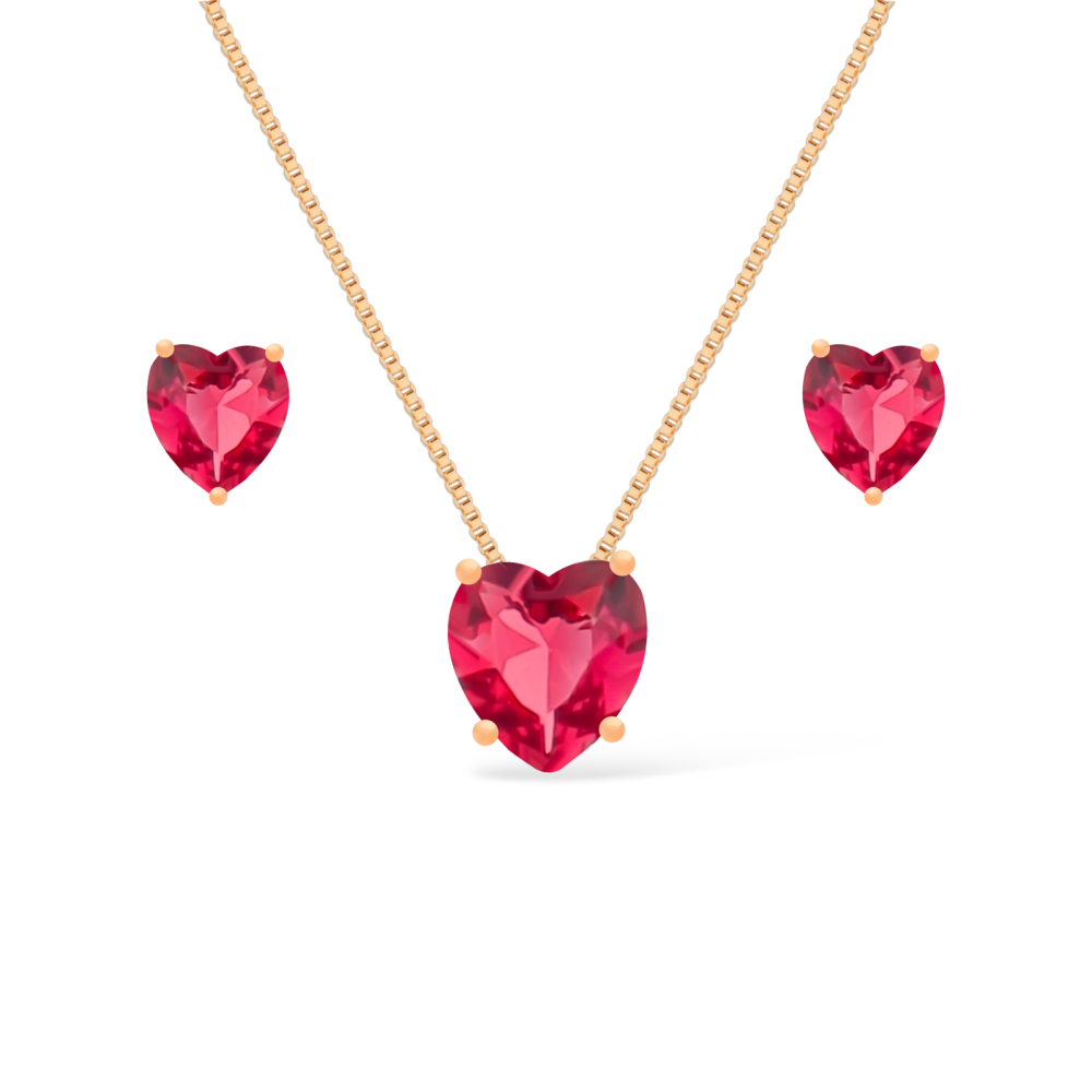 Brinco: Altura: 0,5cm. Largura: 0,6cm. Colar: Altura: 0,7cm. Largura: 0,8cm. Tamanho: 45cm. Pedra: Zircônia. Banho: 10 Camadas de Ouro 24K. Possui Tecnologia Antialérgica.
